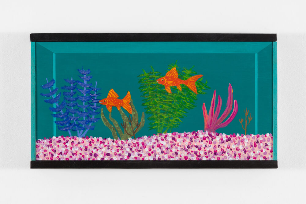 Marc Etherington’s works take pop culture, childhood memories and everyday domestic life as their subject matter, rendering them through a darkly humorous and sometimes absurd lens. References to Jurassic Park, Freddy Krueger, old-school video game aesthetics and boom-boxes point to experiences of coming of age in the 1980s and 1990s, while landscapes and interiors are depicted with an eye for amusing detail.