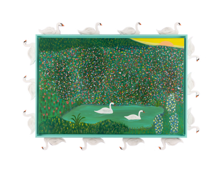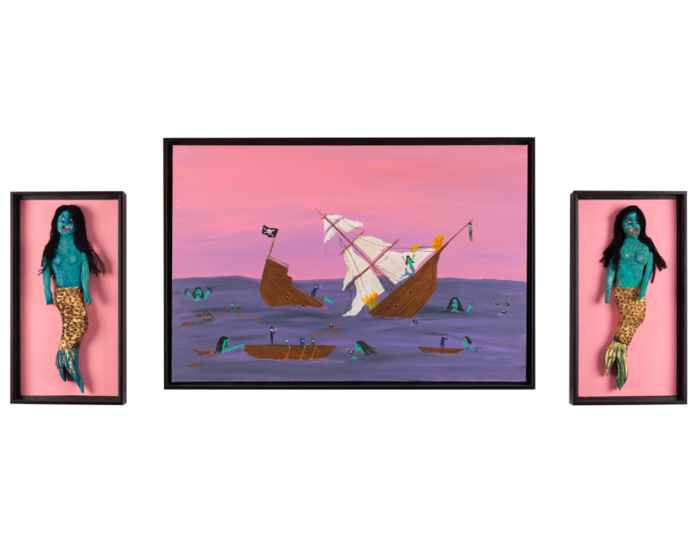 Self-taught, Etherington has maintained a consistent practice in painting and small sculpture for over a decade and more recently has worked with larger scale sculptural installations and ceramics. His sculptural works touch on themes such as mass production and collectibles.
