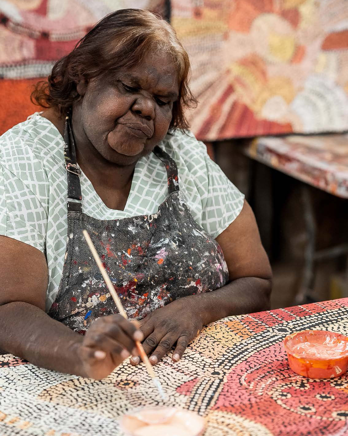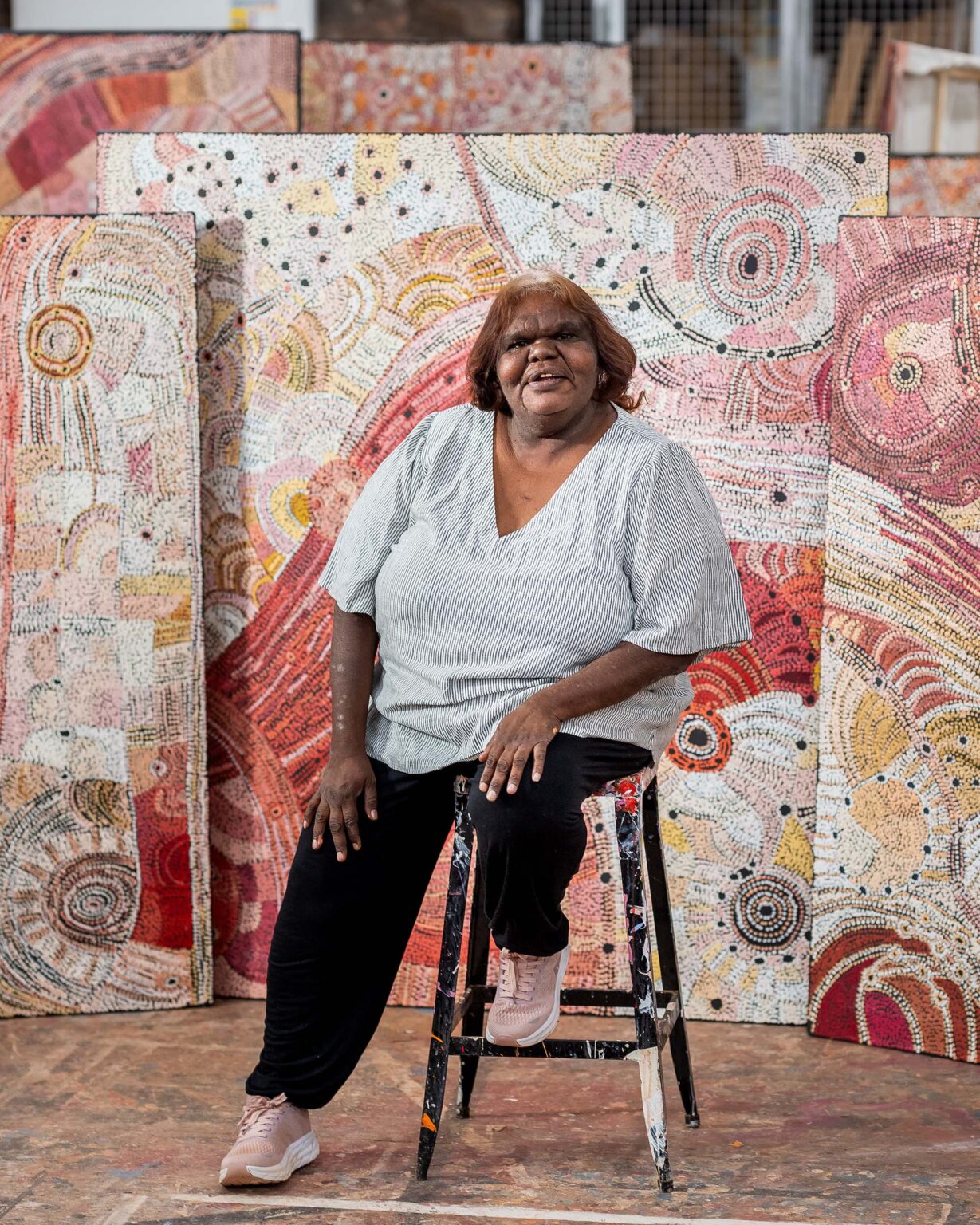 Set to walk alongside the Sistagirls in the 2026 Mardi Gras Parade, Tipungwuti is a significant presence within the Tiwi Islands community and an artist whose highly distinctive painting practice continues to draw strong institutional and collector interest across Australia and abroad.