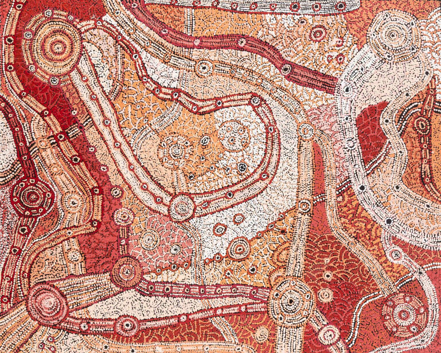 “In years gone by, there was a strong Tiwi tradition of producing nude figurative ironwood carvings that tell [Japarra’s] story,” writes cultural critic and researcher Tristen Harwood. “Tipungwuti’s paintings draw on these important cultural influences to create innovative works grounded in his knowledge of the old stories and connection to longstanding practices of storytelling.”