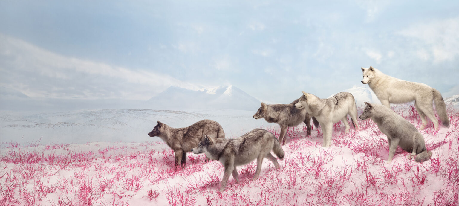 Drawing from a deeply creative and classically trained foundation, Naughten champions new frontiers in photographic practice—where analogue traditions are extended through digital technologies and AI. His images—featuring surreal subjects such as pink zebras, neon gibbons, crested birds, and roving wolves—are vivid, unsettling, and dreamlike.