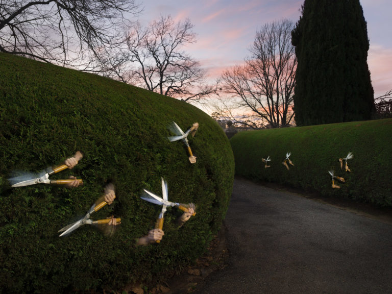 High Jinks in the Hydrangeas explores Dean’s desire to be in and of nature during the first global lockdown in 2020, and how interior dialogues around isolation was inextricably linked with the escape into the exterior world.