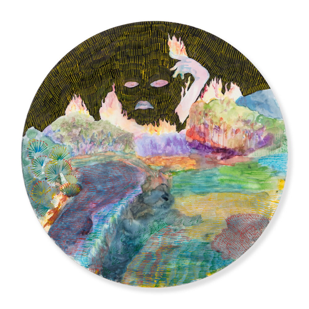 Before joining Michael Reid, Gearin’s work was featured in several notable exhibitions, including Female Drivers (Maitland Regional Art Gallery, 2022), where her multi-panel work Prism – comprising 49 circular paintings – was acquired by the gallery. That same year, she exhibited alongside Alex Seton at The Lock-Up in Newcastle, presenting the multimedia installation Double Rainbow, which explored the science of optics and the perceptual mystery of the human eye.