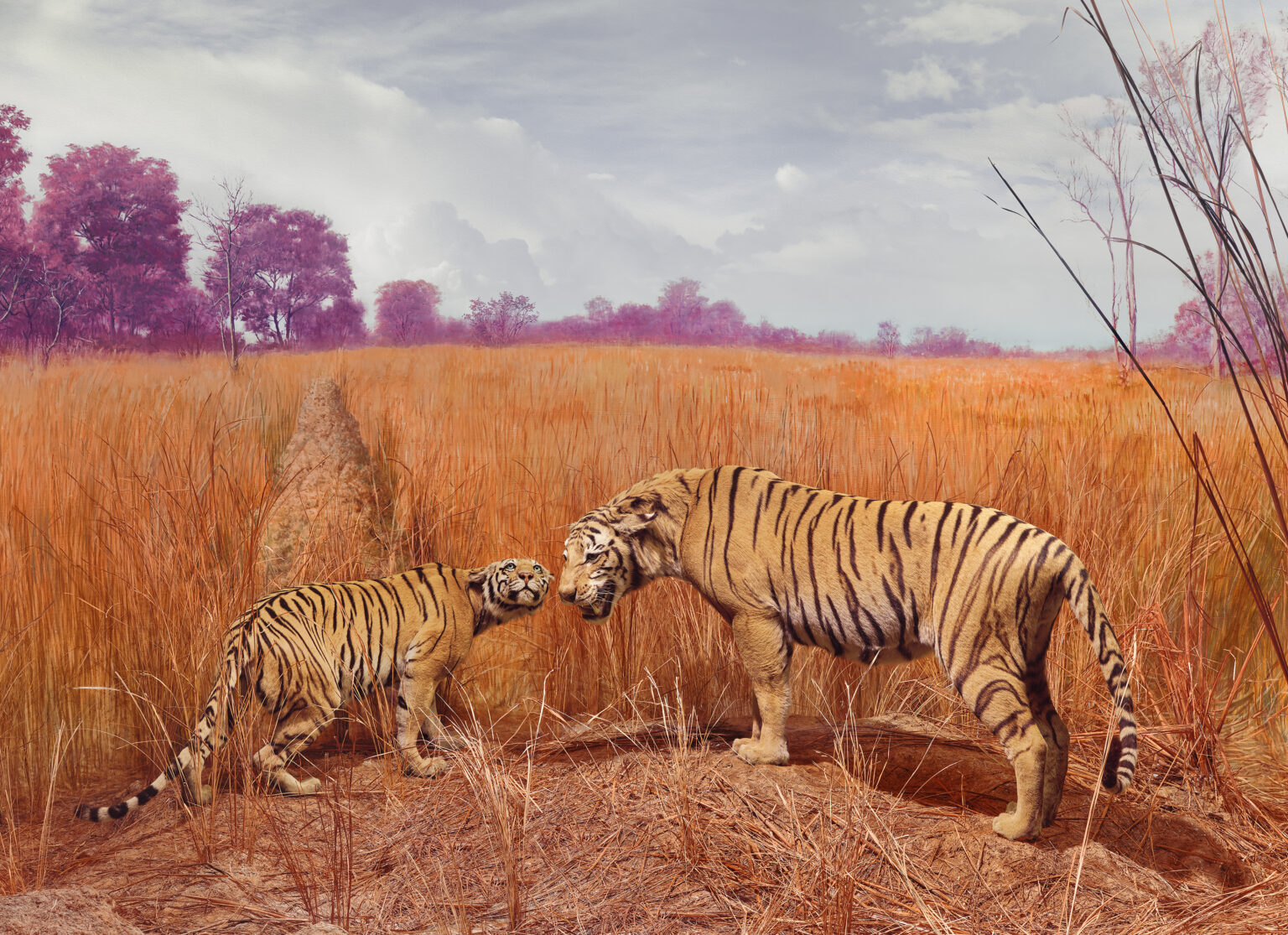 Naughten’s works are meticulously constructed—painterly in their approach, layered and refined through time and digital technique. Influences range from the psychological portraits of Diane Arbus to the lush, documentary-style interventions of Richard Mosse and Patrick Waterhouse. He frequently collaborates with ecologists and conservationists, and has supported environmental initiatives including fundraising for the Jane Goodall Institute.