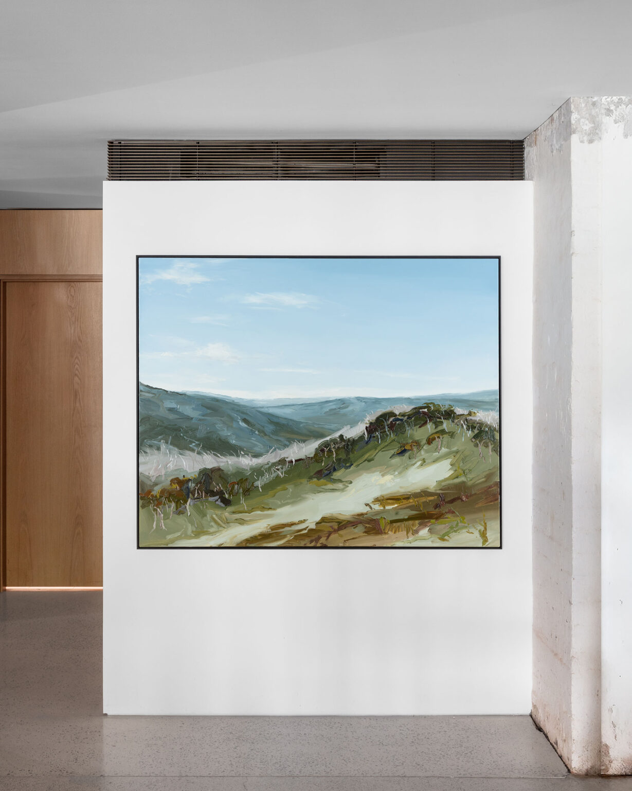 Michael Reid Sydney is delighted to present A Rhythm of Peaks and Flows – the latest solo exhibition from celebrated Dyarubbin/Hawkesbury-based contemporary painter Julz Beresford. A finalist in this year’s Hadley’s Art Prize and one of the most in-demand painters in our flagship Eora/Sydney gallery’s stable, Beresford returns to one of her most enduring subjects with this new series, capturing the epic peaks and winding waterways of the Snowy–Monaro region.