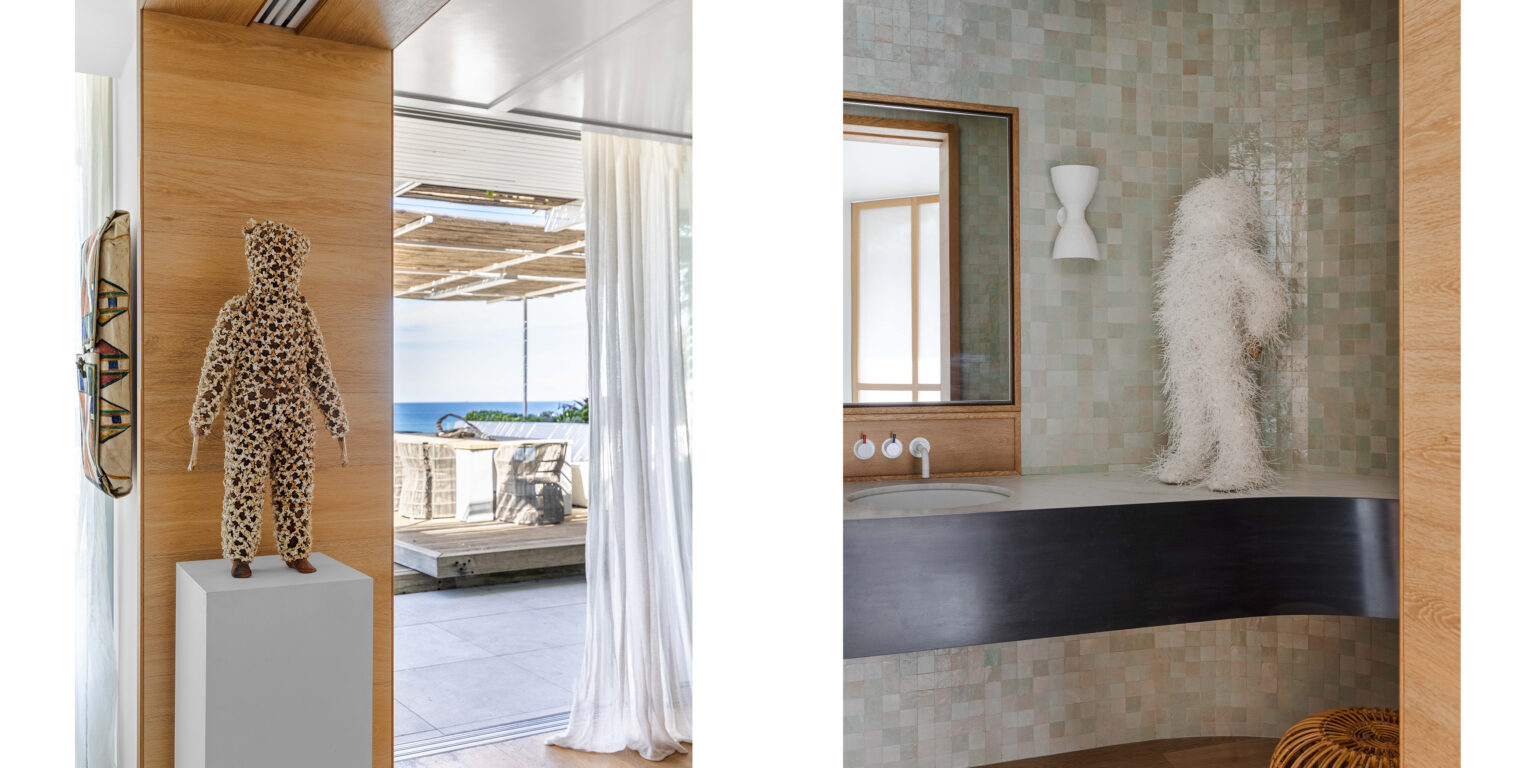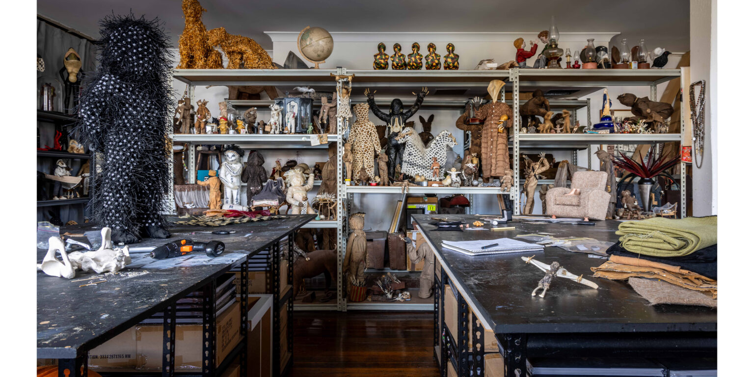 At night, the living space is lit softly by chandeliers of strung bone. Though orderly, every surface shows signs of an artist for whom making is a compulsion even in her downtime.