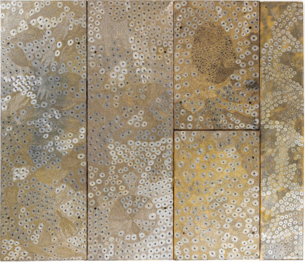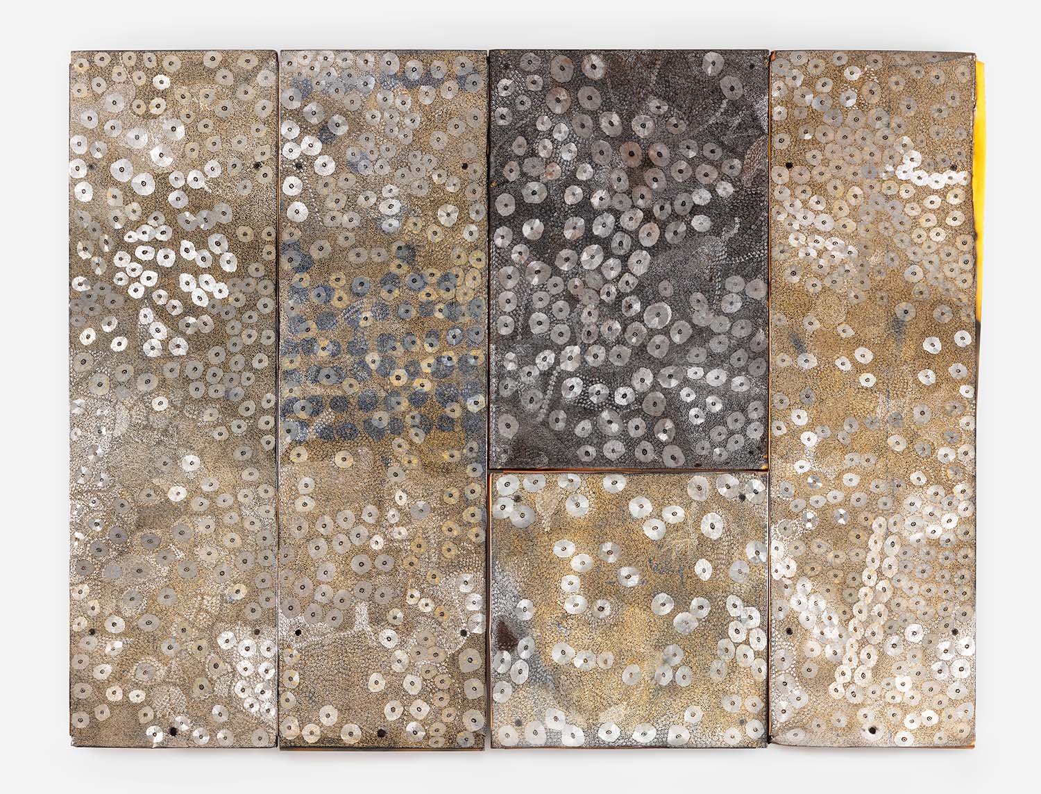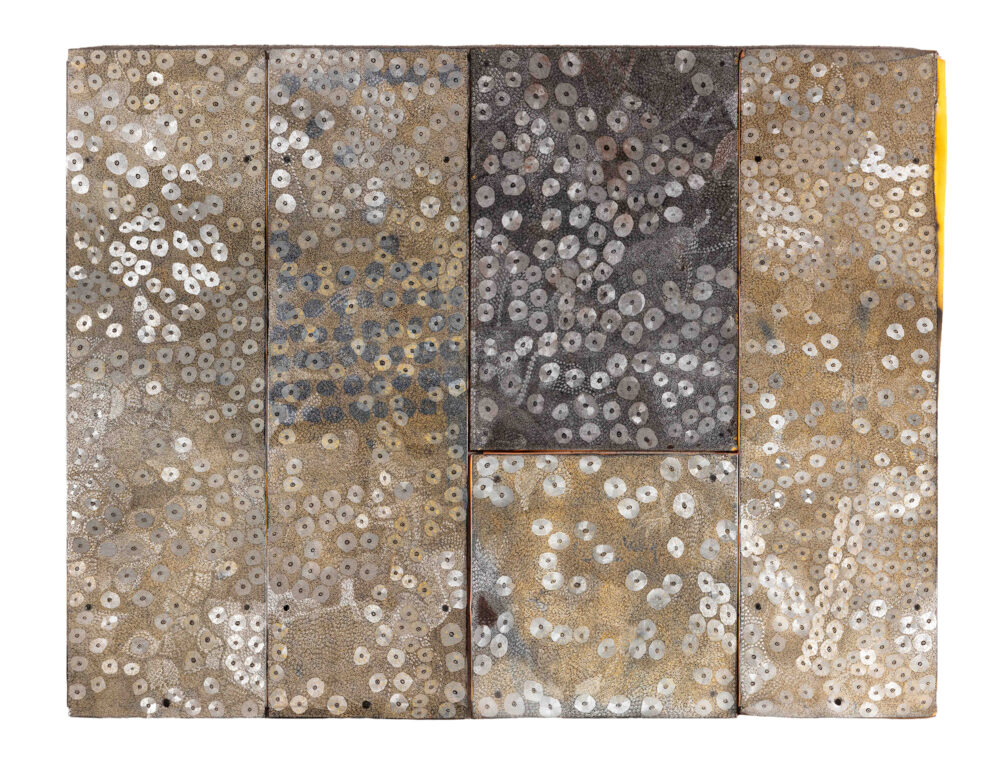 The artist’s first Melbourne Art Fair presentation extends the monumentality and lyricism of her NATSIAA installation across a new suite of composite etched-metal works on a similarly breathtaking scale – including The River of Honey, an epic assemblage extending more than four metres wide.