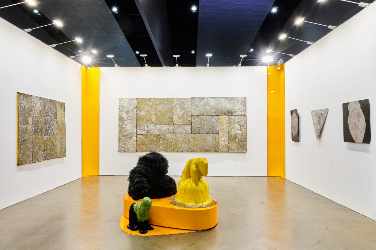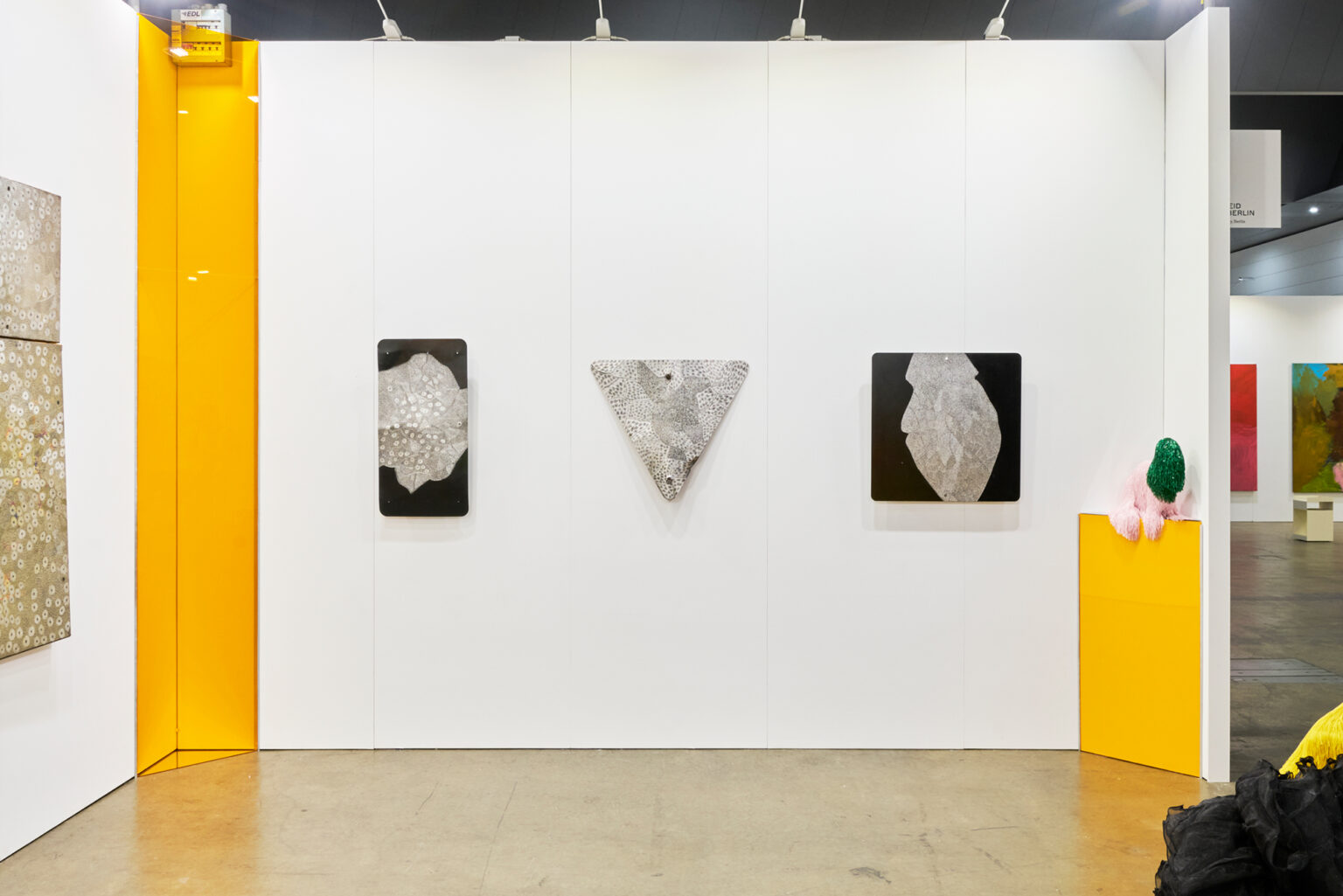 The Michael Reid Sydney + Berlin installation at Melbourne Art Fair 2026 is anchored by a vast constellation of etched-metal works by Yolŋu artist Gaypalani Waṉambi, who is visiting the Victorian capital for the occasion.
