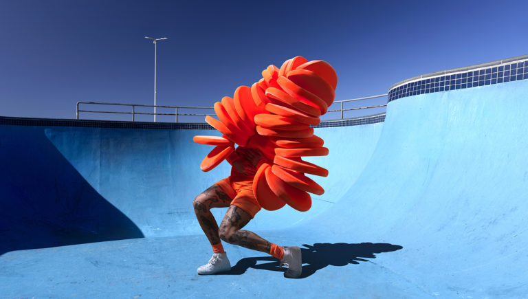 My figure is buried beneath elaborate costumes that mutually entice yet resist the viewer’s examination while the image itself is polished and manicured, taking on an implausible synthetic glow that renders the image’s graphic, shallow, cartoonish.