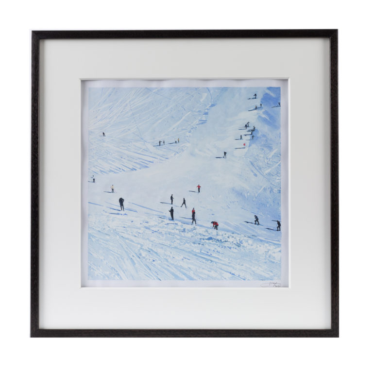 The aesthetics of amateur photography has, over decades, informed and underpinned the visuals of Greenfield-Sanders’ painting work, which occurs in cross-disciplinary stages in the artists New York studio. Beginning with a digital collage framework of multiple found photographs, images are delicately rendered in watercolour and colour pencil. This process sees a once distant and anonymous photographic moment receive a contemporary revival, brought into current discussion through dozens of hours of highly skilled painting work.