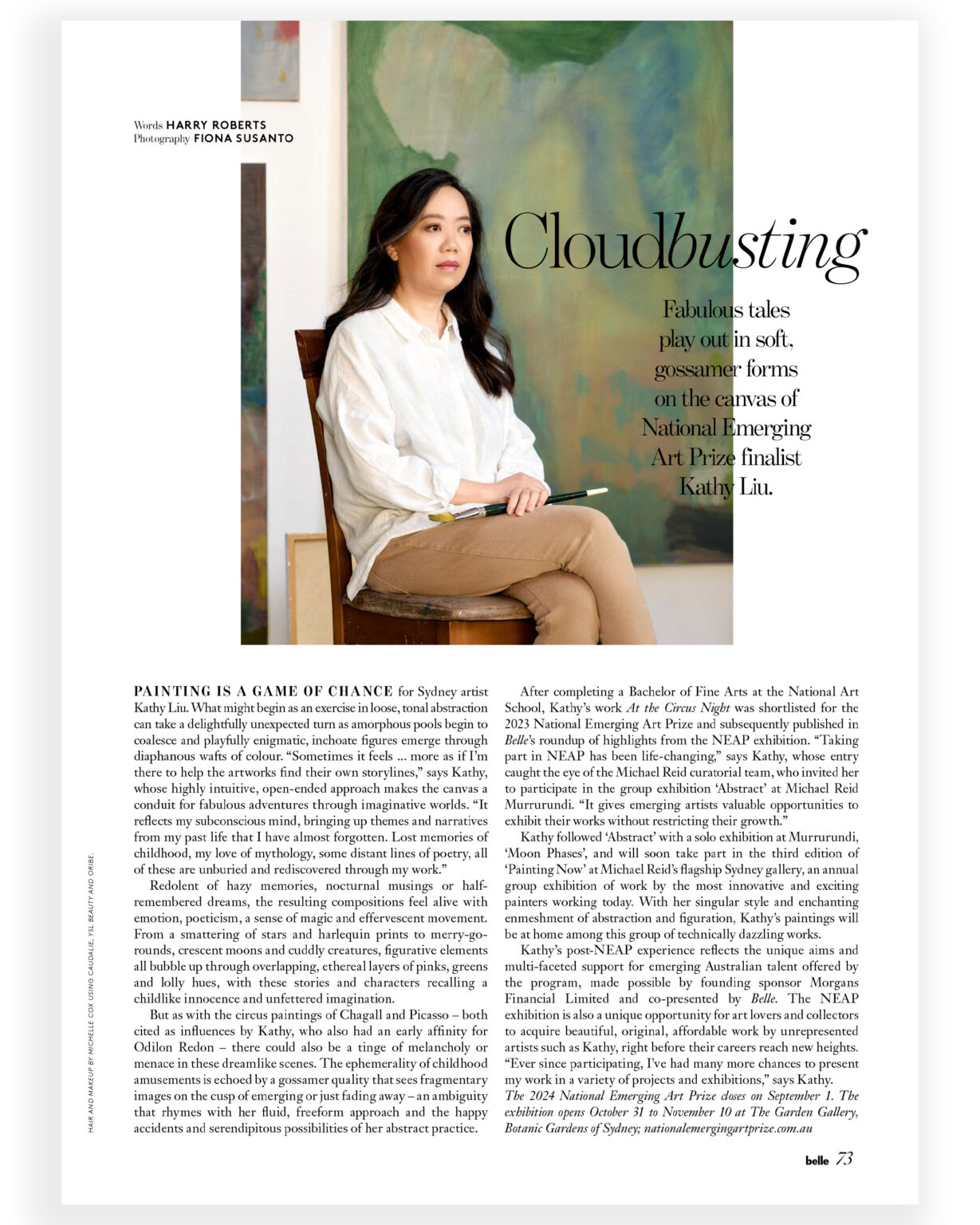 “What might begin as an exercise in loose, tonal abstraction can take a delightfully unexpected turn as amorphous pools begin to coalesce and playfully enigmatic, inchoate figures emerge through diaphanous wafts of colour,” noted the Belle story. “Redolent of hazy memories, nocturnal musings or half-remembered dreams, the resulting compositions feel alive with emotion, poeticism, a sense of magic and effervescent movement.”