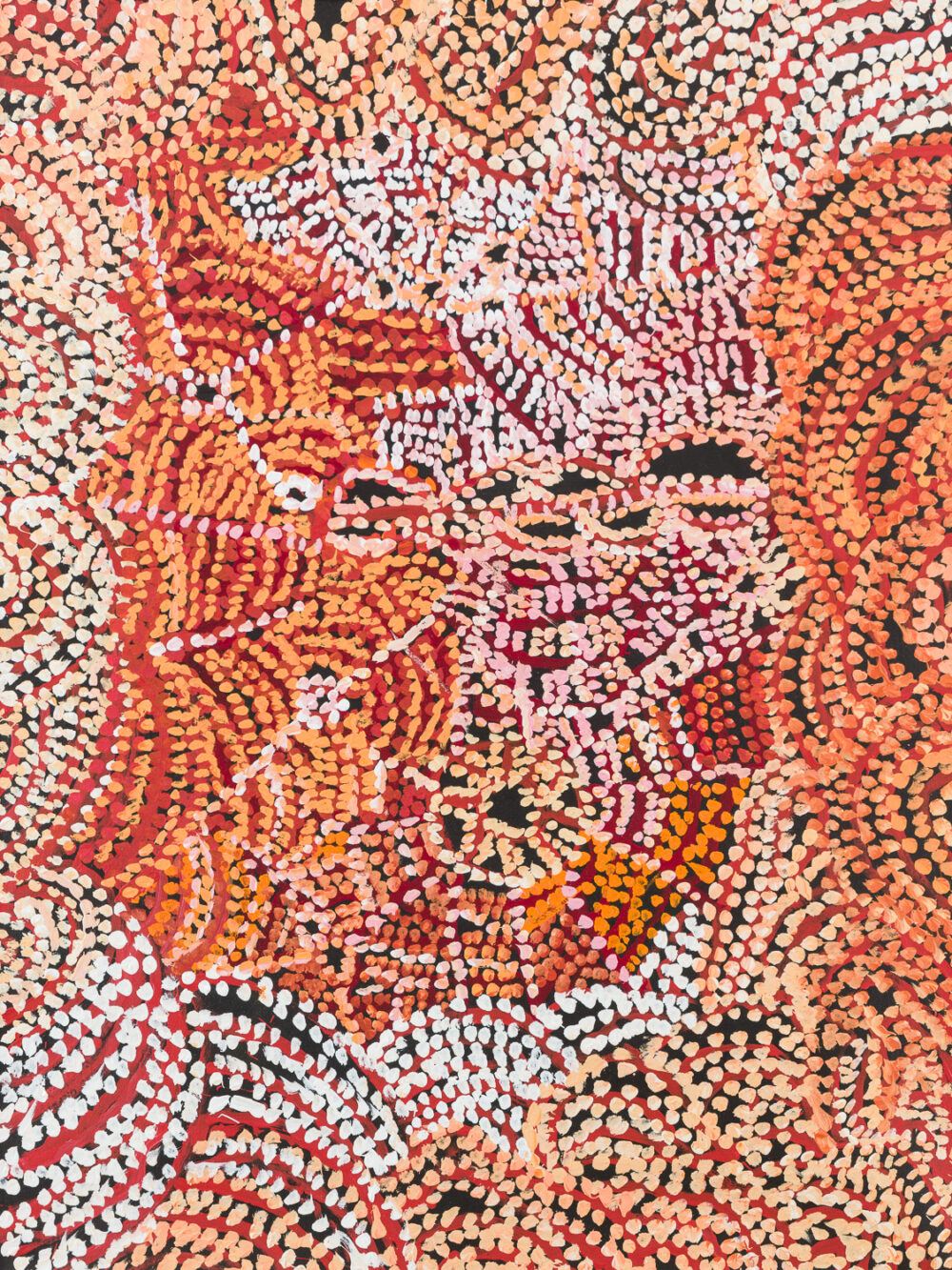 Our winter exhibition program is anchored by an expansive exhibition of new paintings by Emily Cullinan and Vicki Yatjiki Cullinan – mother and daughter artists, both of whom work from Iwantja Arts in the rocky desert country of Indulkana Community on the Anangu Pitjantjatjara Yankunytatjara Lands. Emily Cullinan and Vicki Yatjiki Cullinan are among the leading voices in one of the most dynamic, innovative and celebrated movements in contemporary First Nations painting.