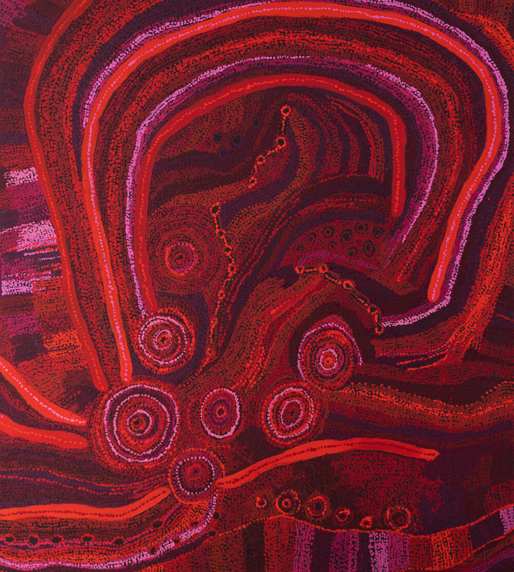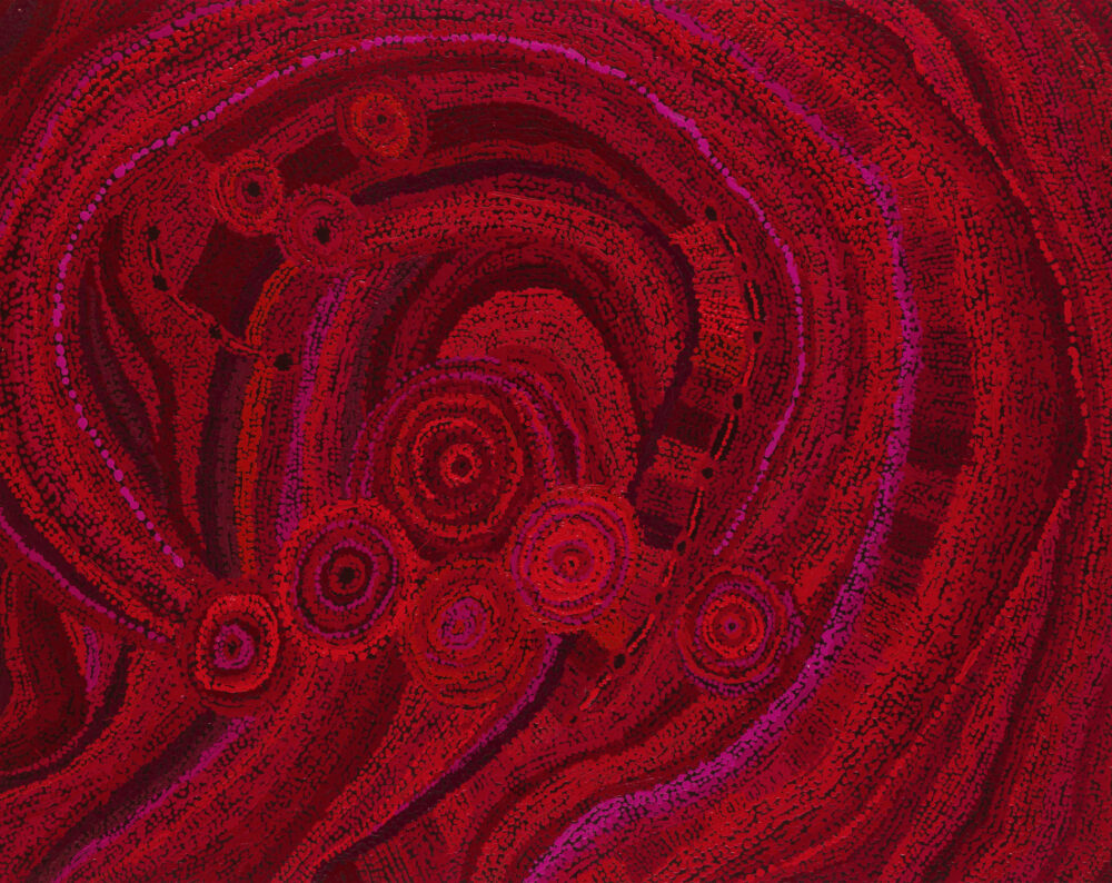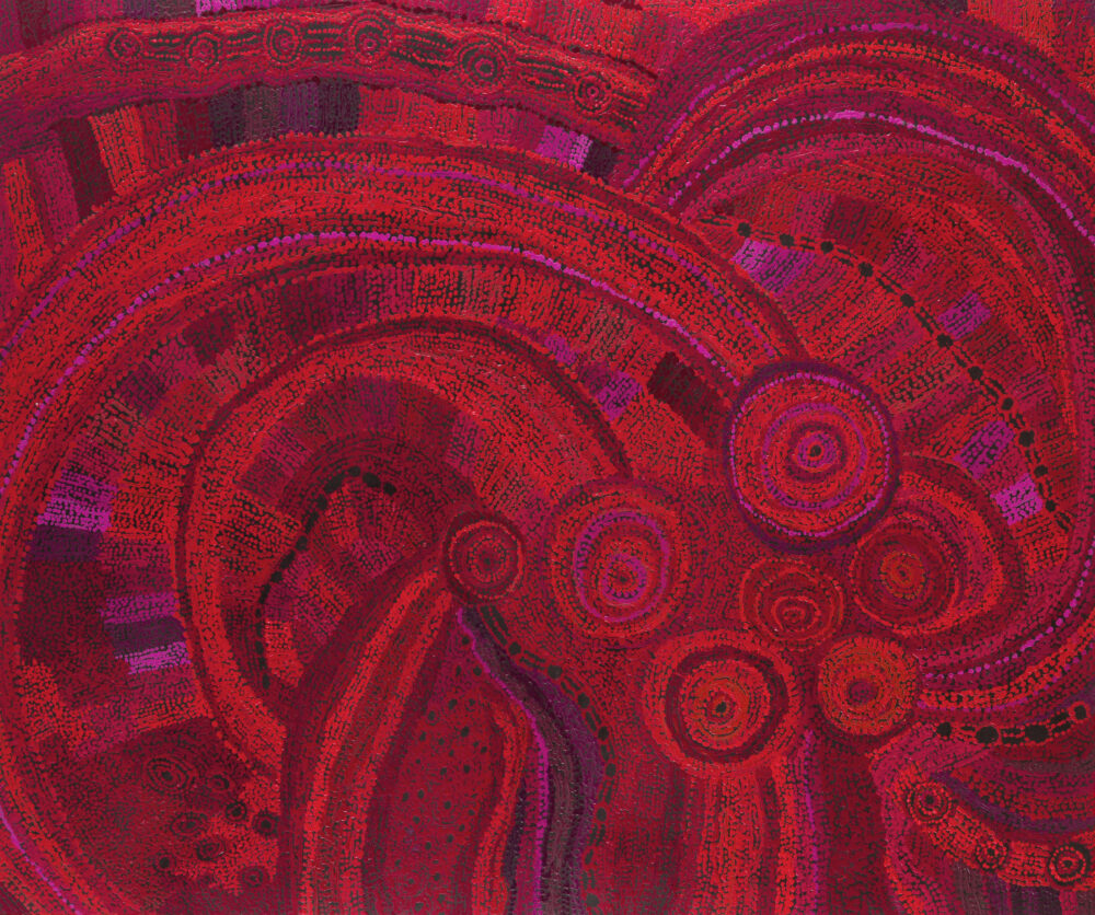 Nganampa Ngura (Our Country) will have added resonance by placing Emily Cullinan’s work in dialogue with that of her daughter, Hadley’s Art Prize and Ravenswood Art Prize winner Vicki Yatjiki Cullinan, whose sublime perspectives of Indulkana Country are conjured via sweeps of deep red crested by rhythmic striations of purple.