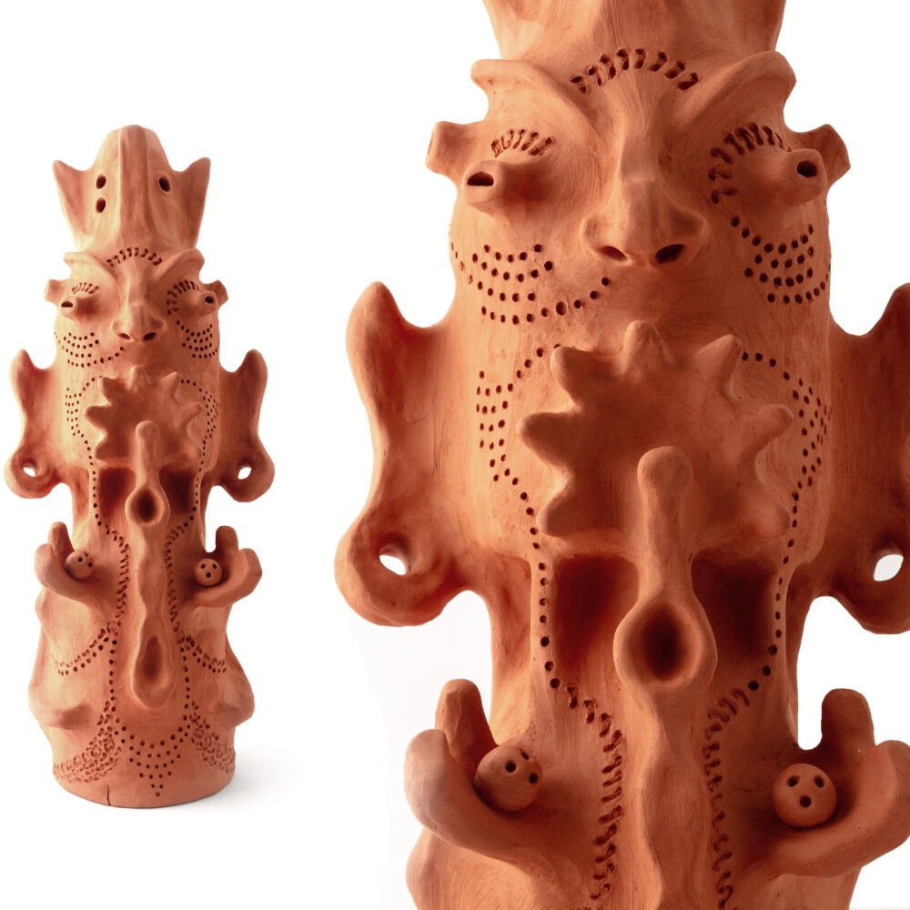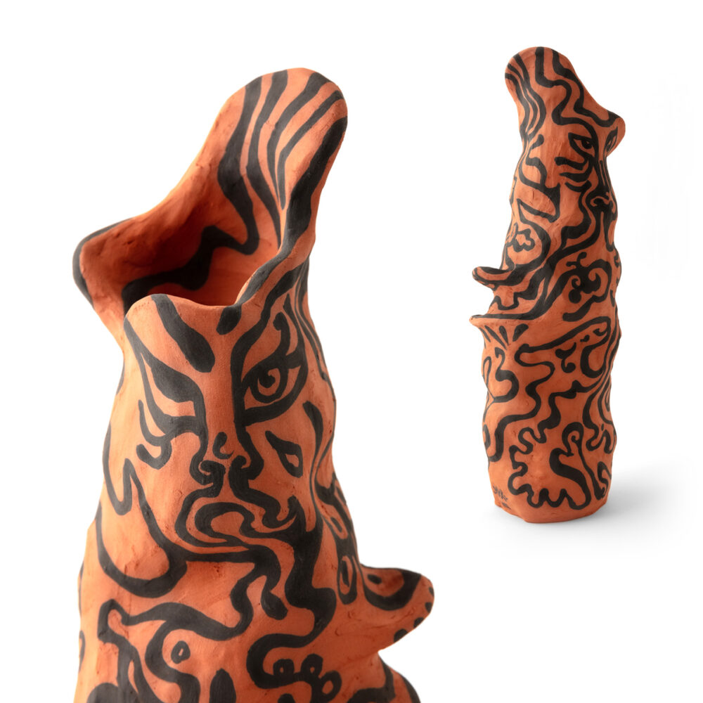 Through her Vomit Girl installations, Mai Nguyễn-Long collides cultural artefacts and personal histories, borrowing from a Vietnamese village aesthetic known as mộc mạc. Mai Nguyễn-Long’s armies of Vomit Girl sculptures have make-believe conversations and are artistic devices that attempt to mend what feels irreparably broken.