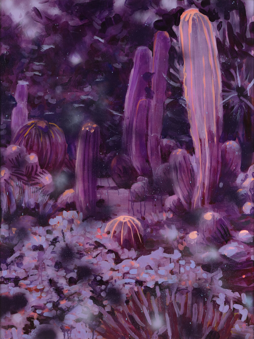 Kathryn Cowen’s work is held in private collections throughout Australia, the Netherlands and the USA. Working across painting, sculpture and installation, the Eora/Sydney-based artist has exhibited at numerous commercial galleries and institutions since graduating with a Bachelor of Fine Arts (Hons) from the National Art School in 2007. Drawing on science fiction and revelling in colour and light, her large-scale atmospheric landscapes sit alongside smaller figurative works, vividly conjuring imagined, open-ended narratives through a dreamlike coalescence of disparate elements.