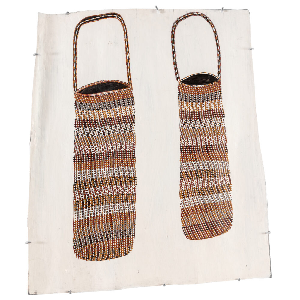Muluymuluy Wirrpanda was a loyal and constant sister to Ms. M. Wirrpanda. They painted together side by side at the art centre. As the elder sister explored an innovative string of genres Muluymuluy was a companion artist riffing on the topics of native Australian vegetables, fruit and shellfish. Never copying but always harmonising. This has continued after the loss of her sister as she honours the gift of that time they had together.