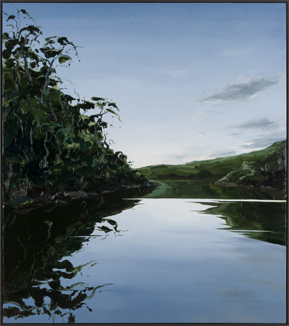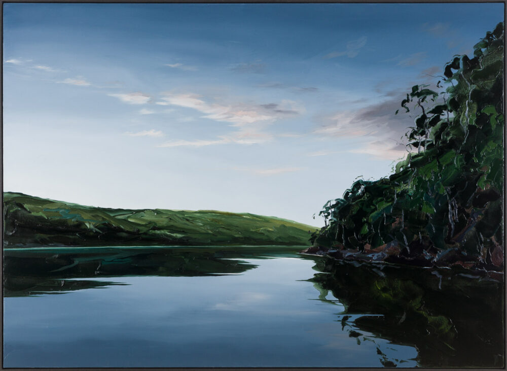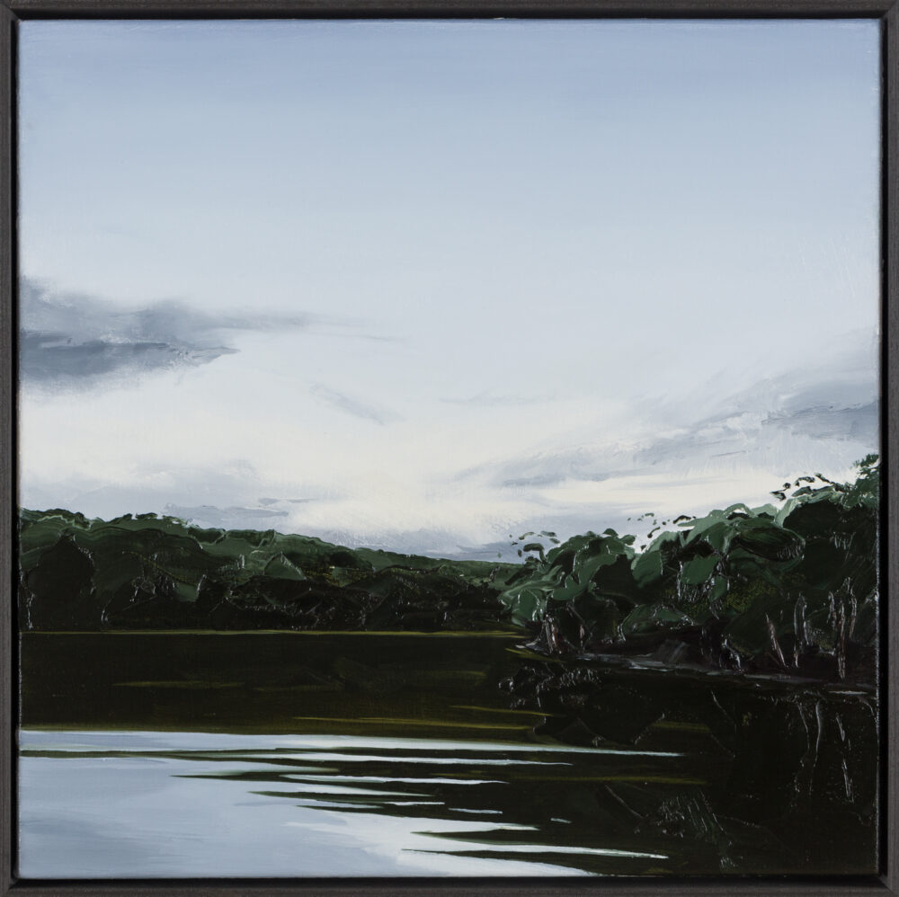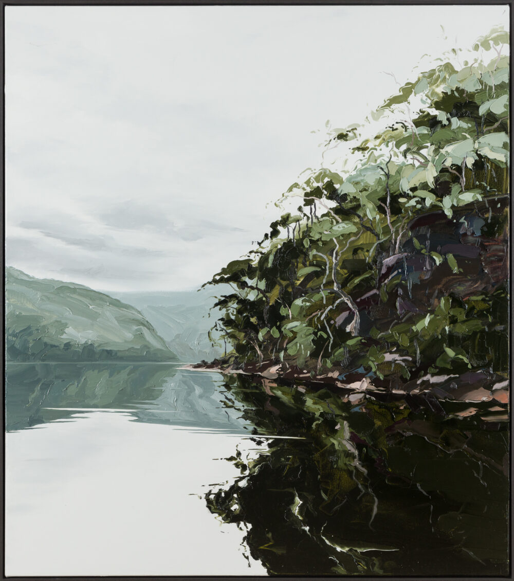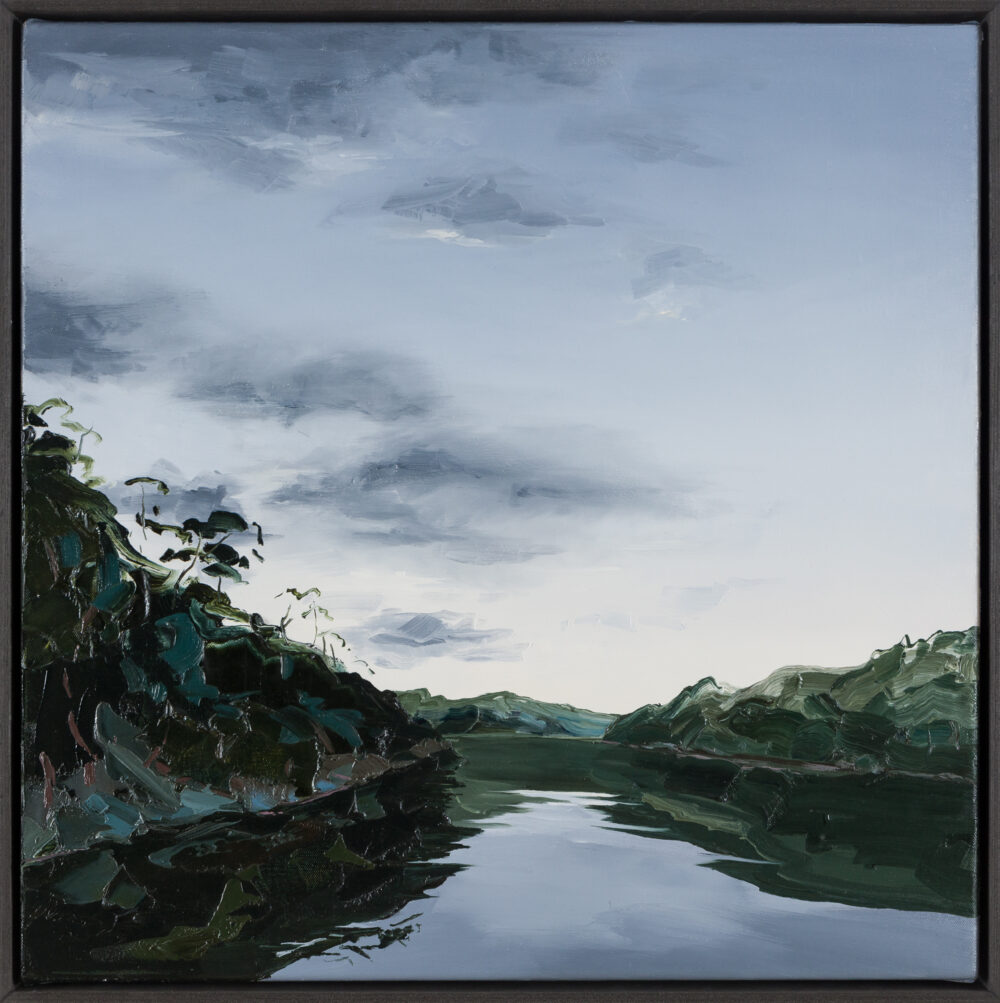 In her newest exhibition, Julz Beresford explores changing light over the Hawksbury River, treating audiences to her exquisite renderings of dusk and dawn. Beresford’s paintings are awash with Romantic sensibilities, sending the viewer on a journey through glassy, rippling waterways that snake through tangles of bush and tumbling sandstone.