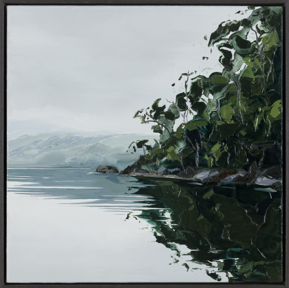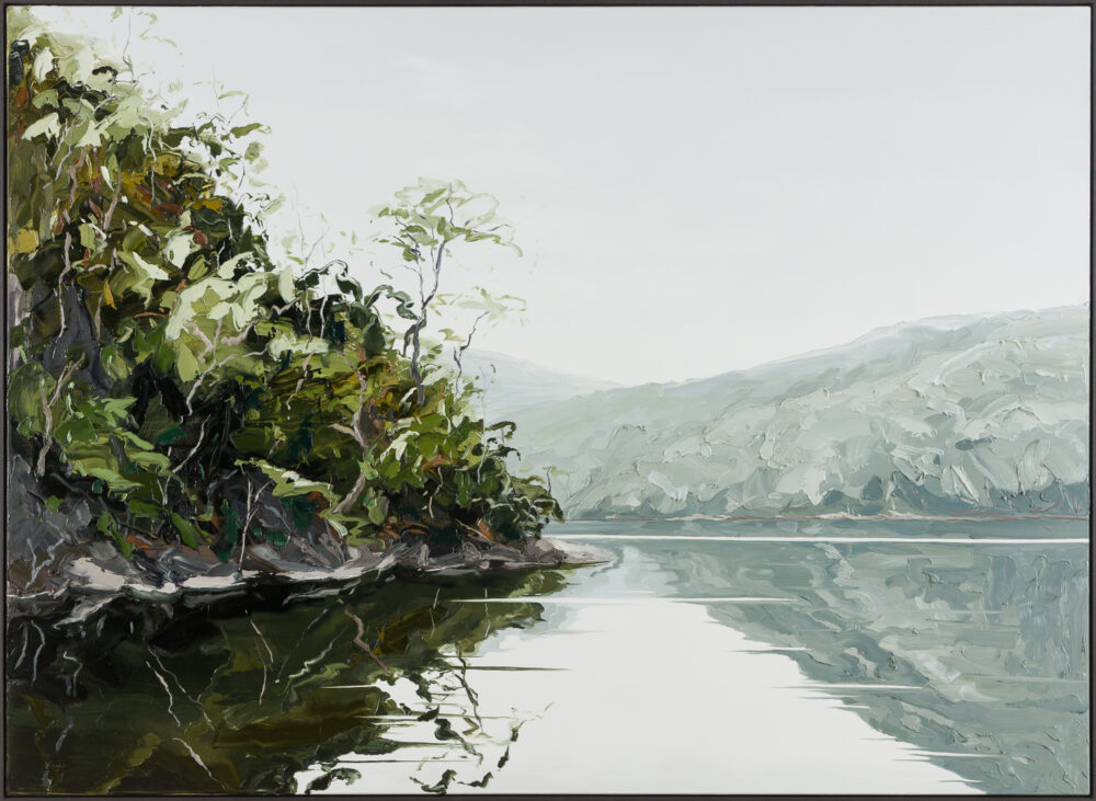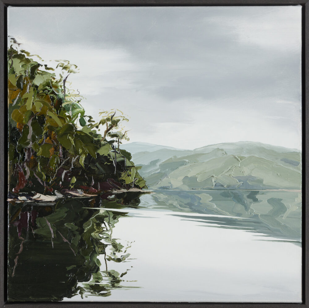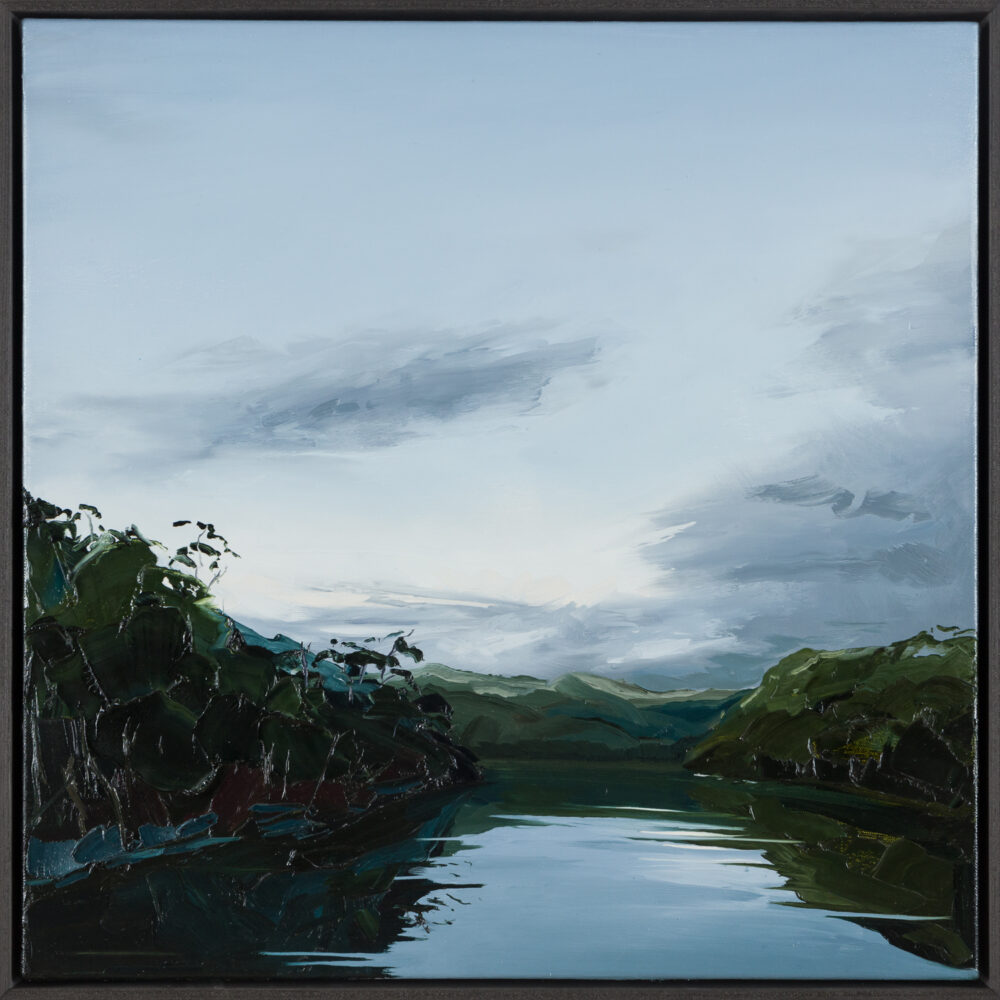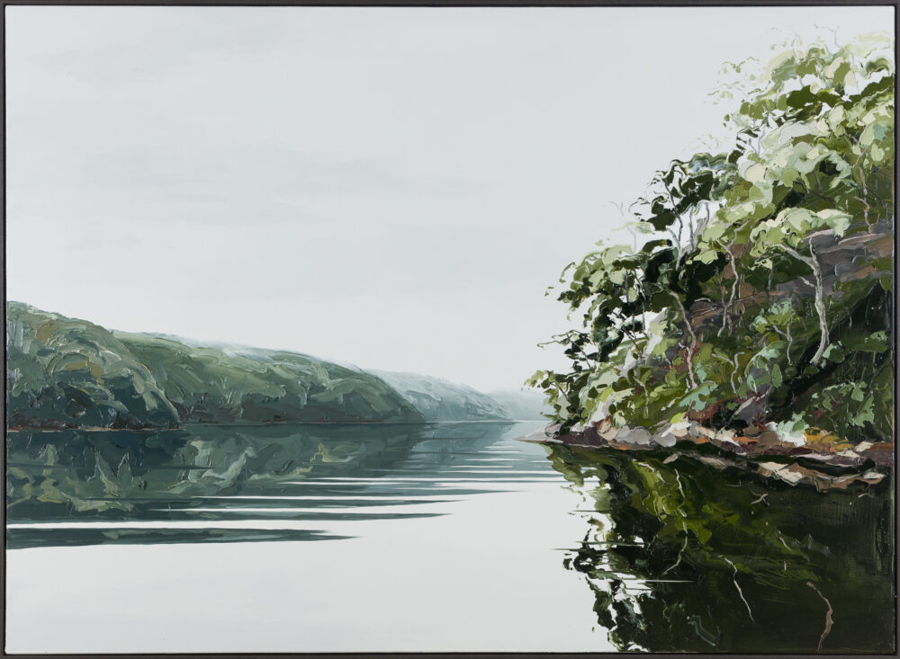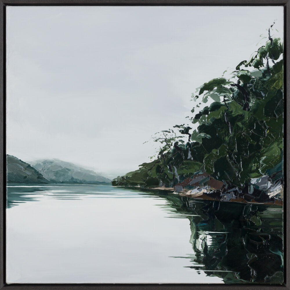 In her newest exhibition, Julz Beresford explores changing light over the Hawksbury River, treating audiences to her exquisite renderings of dusk and dawn. Beresford’s paintings are awash with Romantic sensibilities, sending the viewer on a journey through glassy, rippling waterways that snake through tangles of bush and tumbling sandstone.