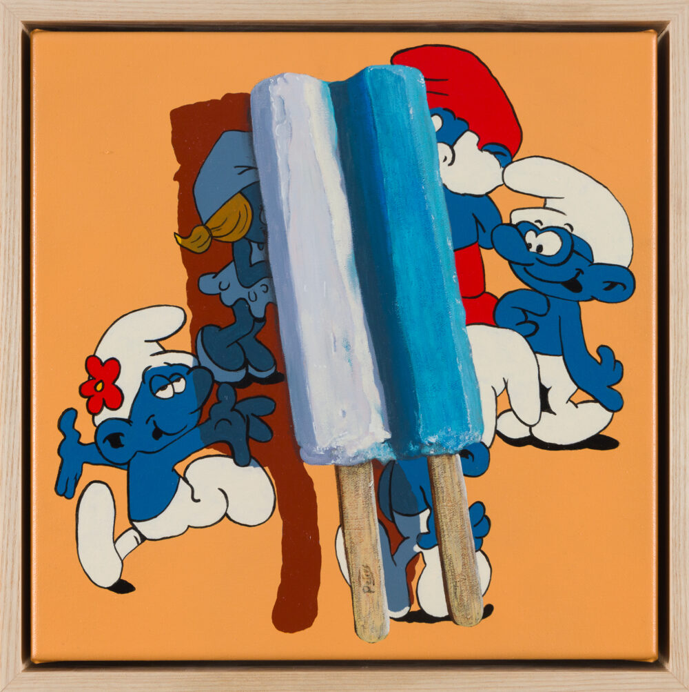 Soft Core was based on a manipulated photo I took of a defiant-looking discarded mattress in New York after a blizzard. I liked the soft winter light falling on it added the rainbow label to make it look optimistic.