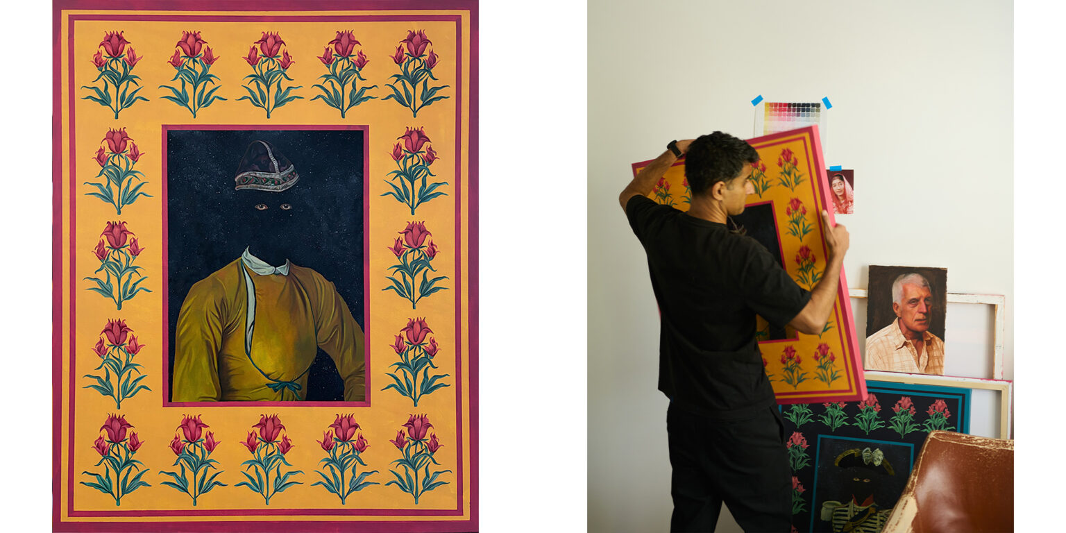 My most recent work continues to investigate the long shadow of colonialism on diasporic identity. I’ve been particularly focused on how external projections – constructed through orientalism and the colonial gaze – have been internalised by communities, including my own. The National Emerging Art Prize work and my upcoming show at Michael Reid Sydney explore these ideas through composite visual languages: Mughal miniature structures, British botanical drawings, and faceless figures. These paintings are a response to inherited ways of seeing, but also an invitation to look again – more critically.