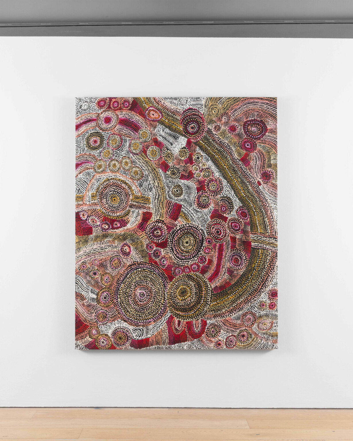 Family, language and collective strength sit at the heart of both artists’ practices. “Family and community are so important to Aṉangu culture,” says Priscilla Singer, who previously exhibited her work to great acclaim in the 2025 Michael Reid Southern Highlands group show Ngura Pilunpa – Peaceful Country. “Our connection to each other and to our Country informs everything we do, especially making art and passing on culture to our younger generations. Being together makes us strong.”