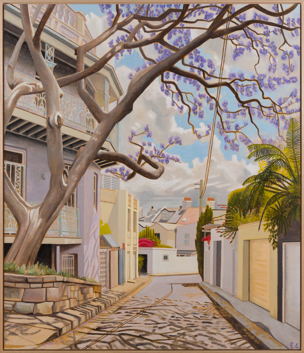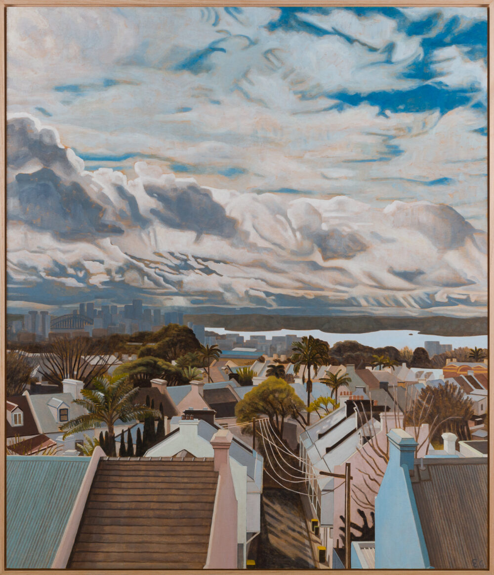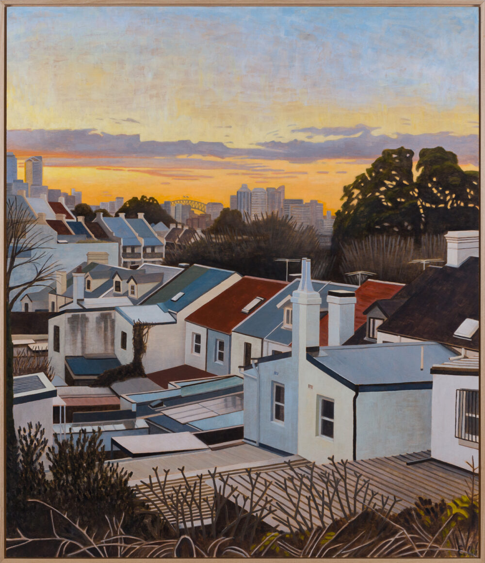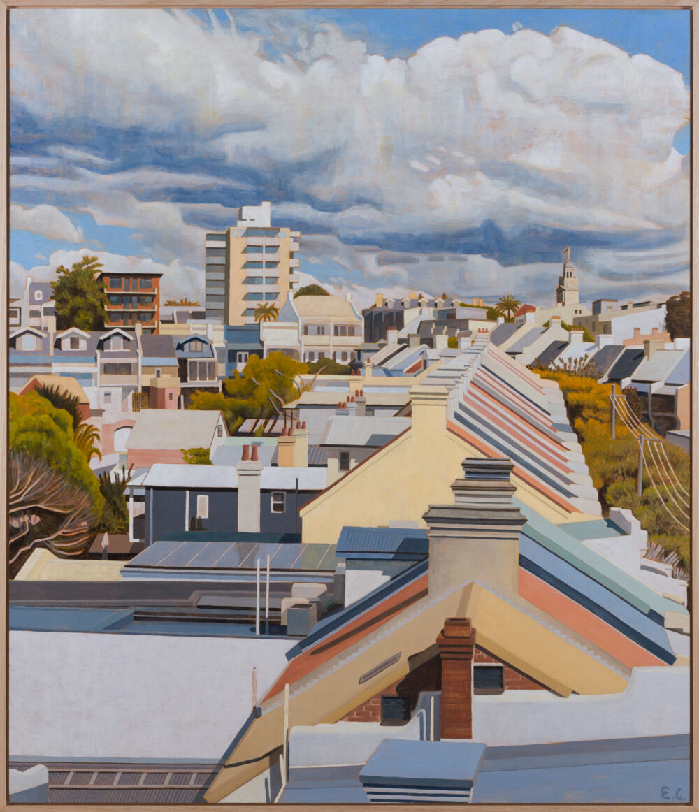 “I wanted to delve into a more intimate understanding of the distinctively local” says the artist, who beautifully captures the eclectic jumble of Victorian rooftops and gelato-toned terraces that spill over hilly topography. In this this quintessentially Sydney suburb of Paddington, Gordon has found the perfect subject to take her practice to a newly immersive scope.