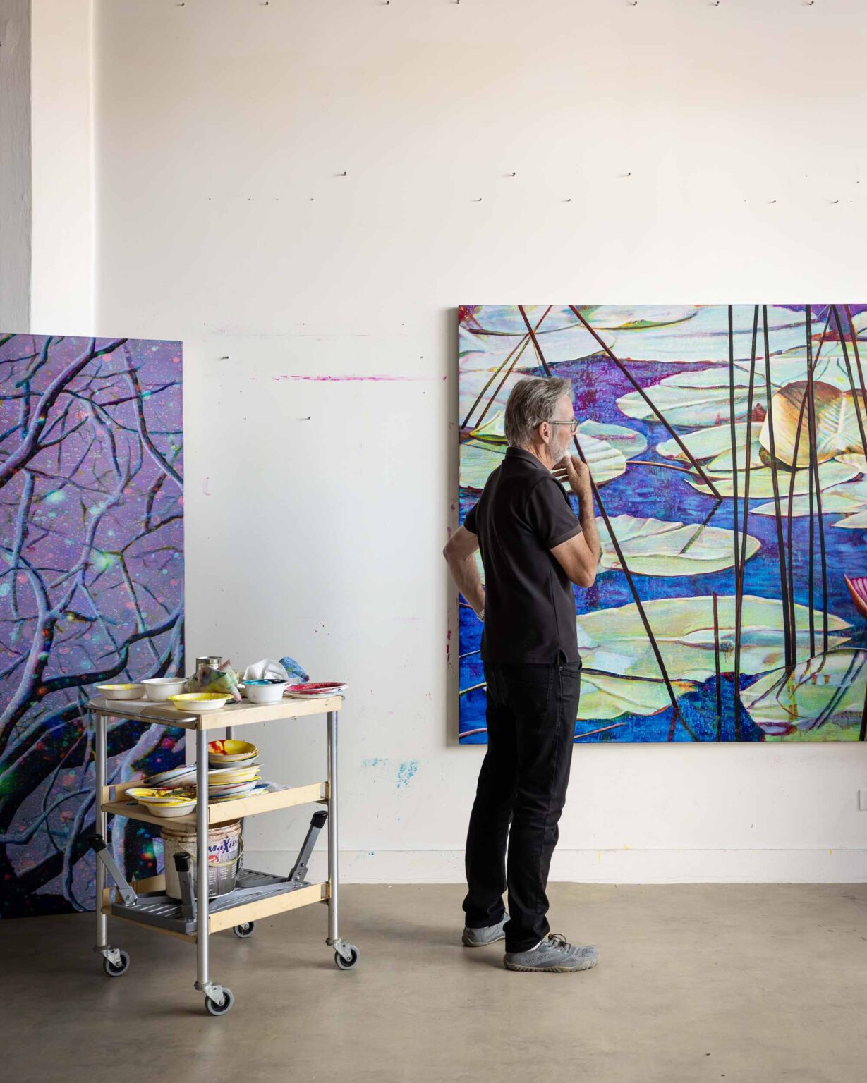 People in Australia say my work feels European, and people in Europe say it feels Australian. So I’m somewhere in between. I might work on a painting in one studio and finish it in the other, and it looks completely different. The light does have an effect – you see things differently. You adjust, you accommodate.