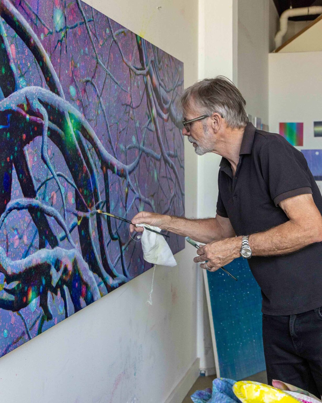 Later I realised – particularly after a series of massive paintings in 2000 – that this approach had limits. Those works were about two-and-a-half metres by six metres, and I ended up needing serious physiotherapy. So I slowed down. It wasn’t essential to do everything in one session, and that allowed for more control. There’s a desire to master the challenges you set for yourself, and eventually you do.