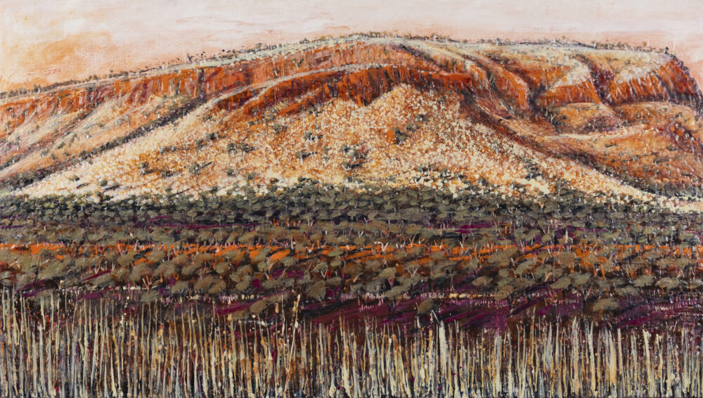 Presented by Michael Reid Sydney + Berlin with adjoining Michael Reid Beyond programs, Unfolding is a painterly ode to the artist’s adoration of the Pilbara. Consisting of nine individual paintings, the singular components of this concertina work coalesce to form a truly breathtaking visual account of the Pilbara.