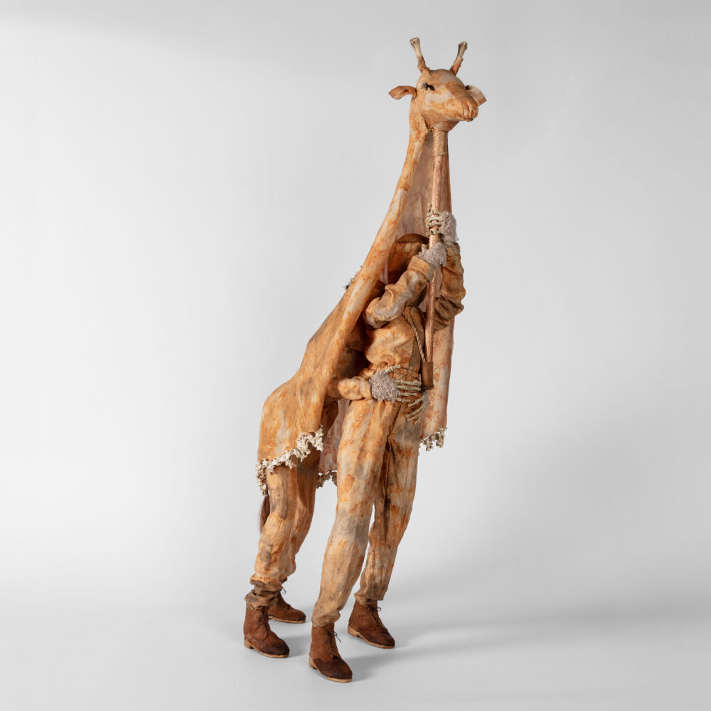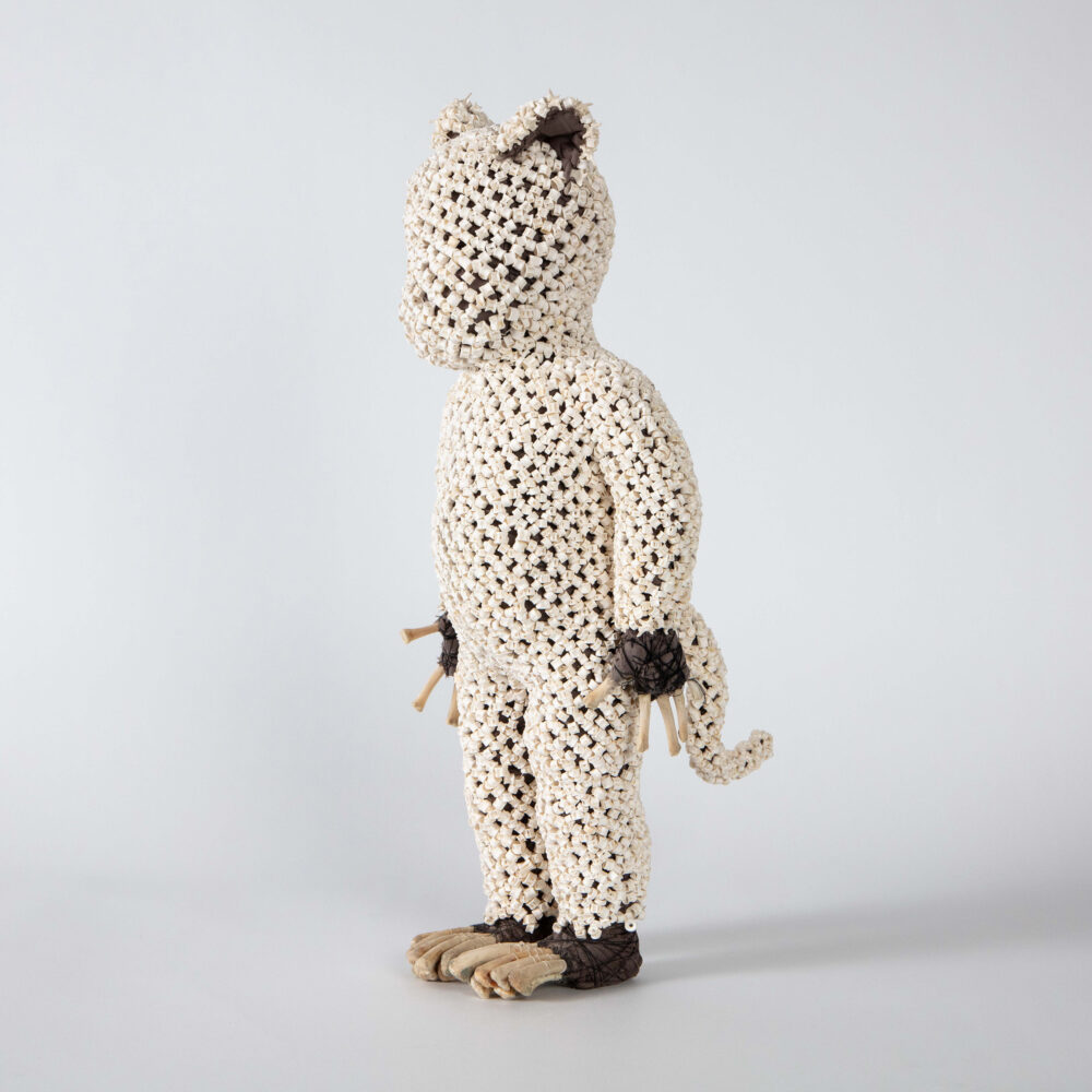 steel armature, cast acrylic resin, earth, cotton, natural fibre, bat-wing coral tree seeds, quandong seeds, cast and natural bone, human teeth, artificial eye