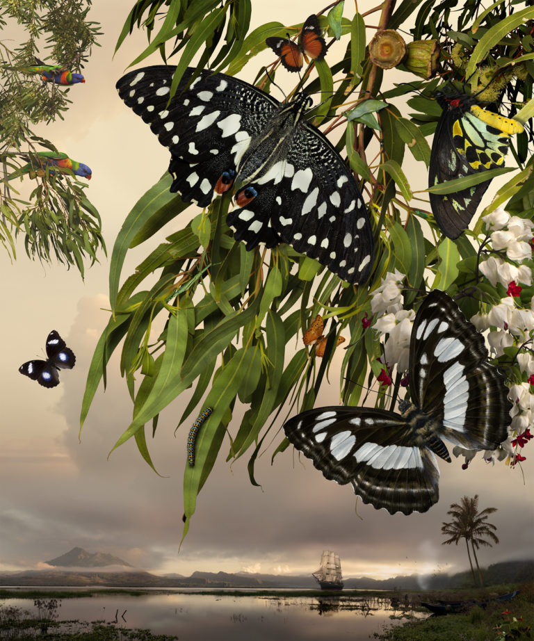Like the earlier work, these works take inspiration from Joseph Banks’ botanical drawings and present glimpses to a rare and exotic paradise; and in the case of Florilegium #9, a world inhabited by a bird which as been extinct since the 17th Century, the dodo.