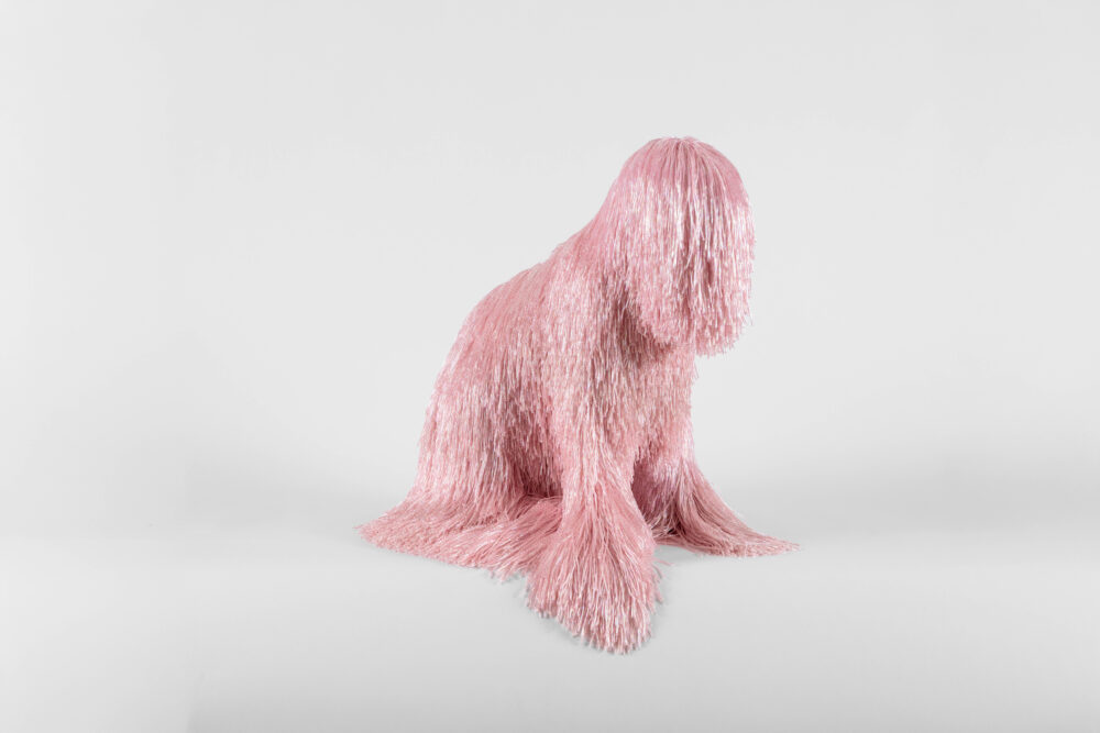 Reconfigured costumes; felt, fringe, lame, lycra, pleather, polyester thread, rhinestones, sequin, tulle, vinyl, powdercoated metal pole and brackets