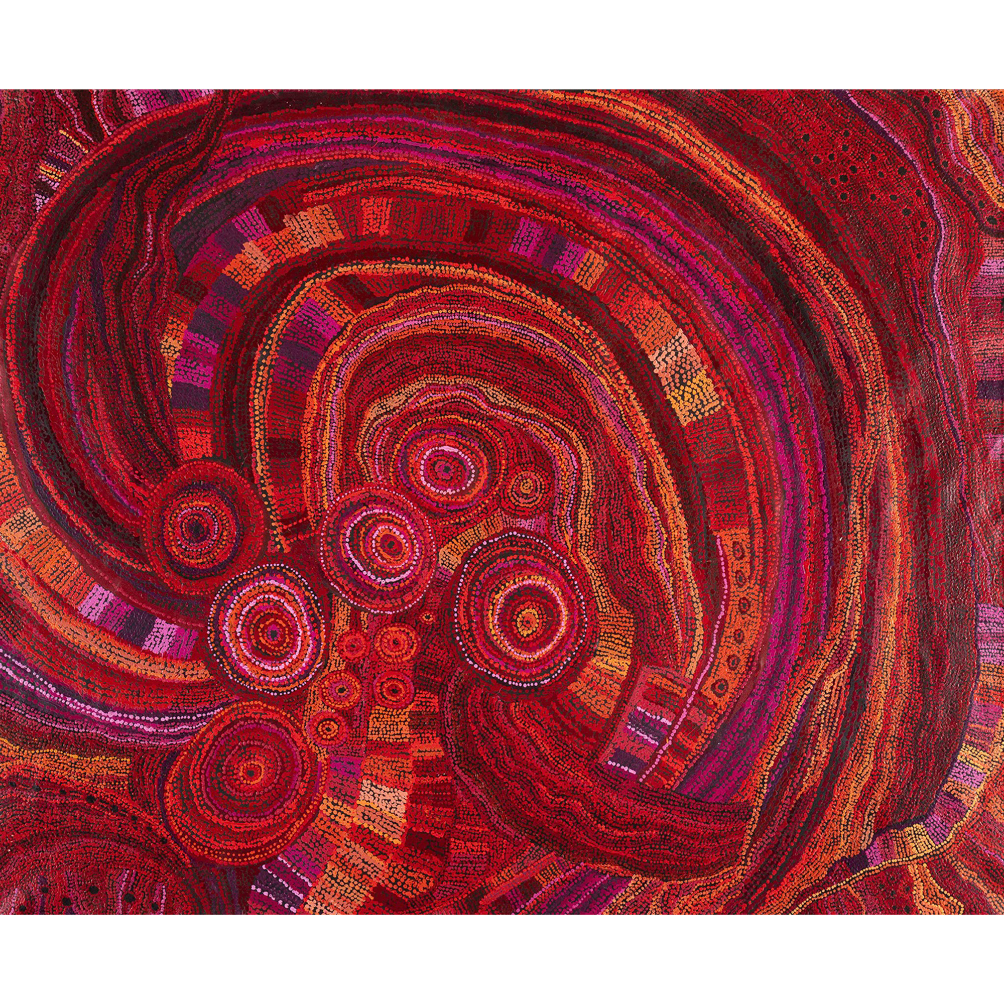 This work is accompanied by a certificate from Iwantja Arts which states: “I am a Yankunytjatjara woman from Indulkana Community on the Anangu Pitjantjatjara Yankunytjatjara (APY) Lands in South Australia. I’m an artist at Iwantja Arts, where I started painng over 20 years ago.