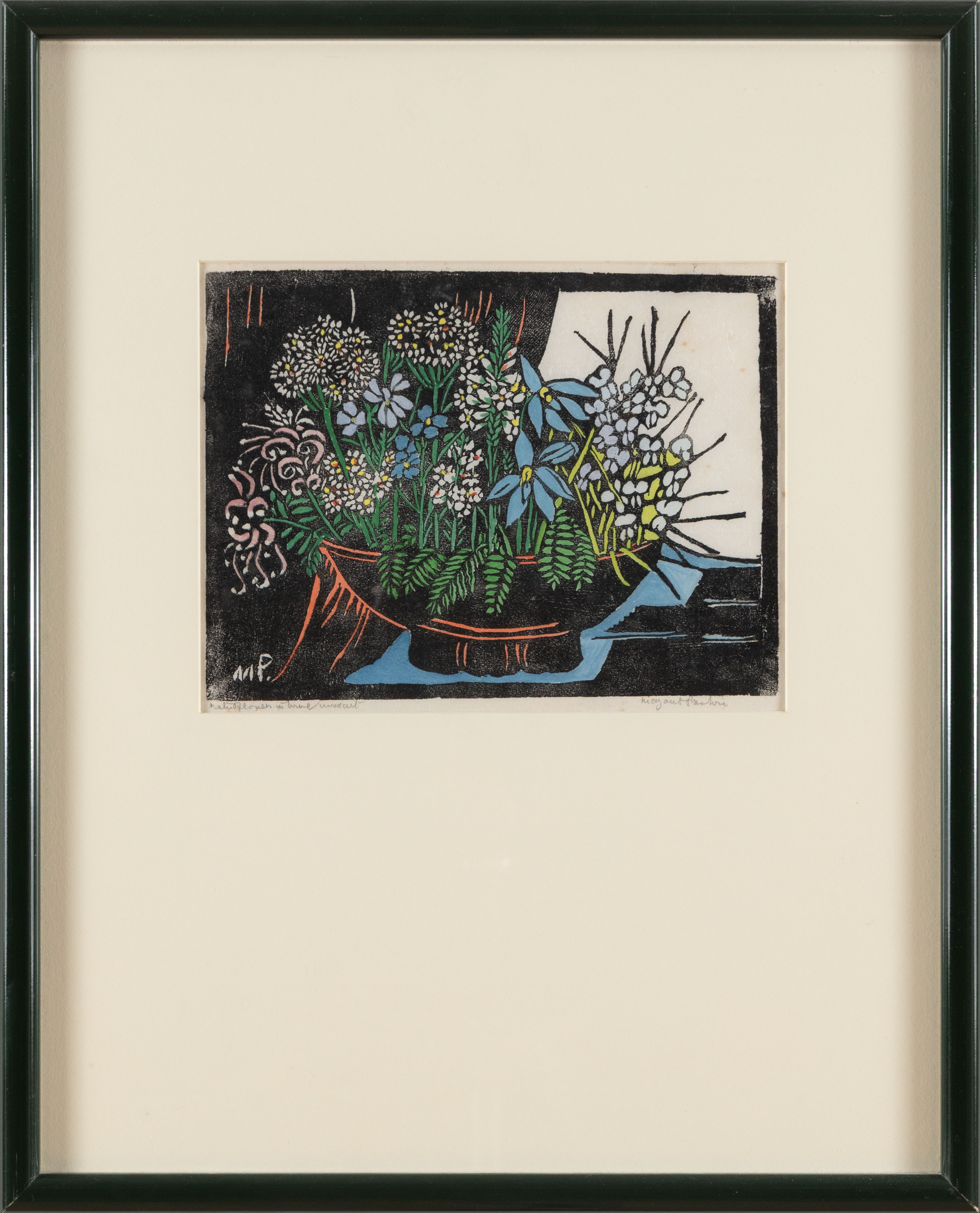 A scarce design that has not appeared at auction in at least 35 years, The Bowl reflects Preston’s mid-career refinement of her floral motifs. The restrained design, balanced within a shallow still-life arrangement, is less commonly encountered than her more celebrated flower subjects, enhancing its collectability for those seeking breadth in a Preston collection.