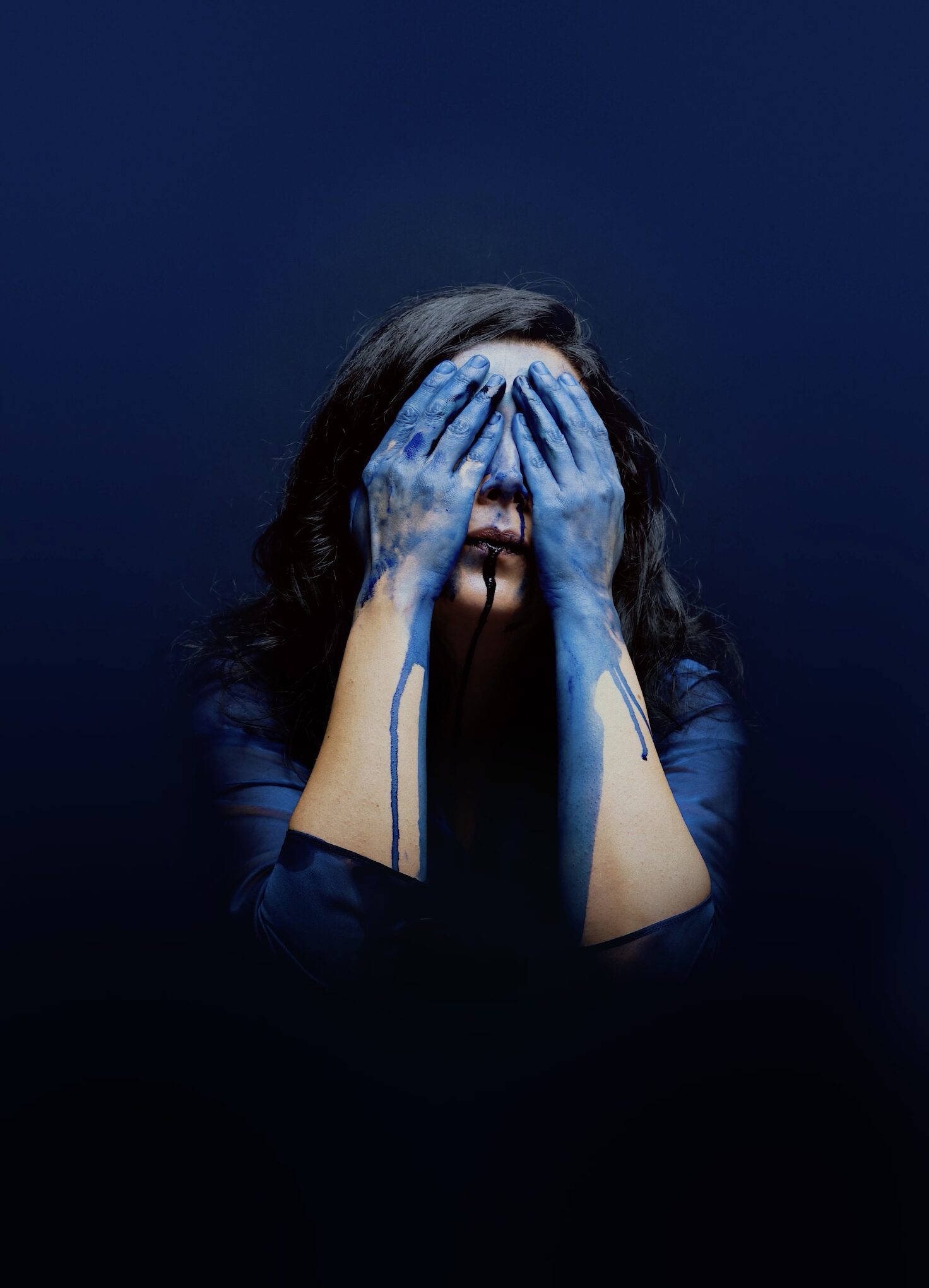 Blue ink emerges as a central symbol spilling, staining, seeping evoking the thoughts that press to the surface but remain unspoken. Traditionally linked to truth and trust, blue ink resonates with both personal and political meaning across cultures. In this context, it marks what is withheld, what remains unsaid.